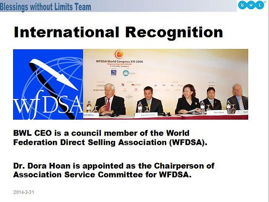 WFDSA - World Federation Direct Selling Association that handles all Direct Selling in the World.